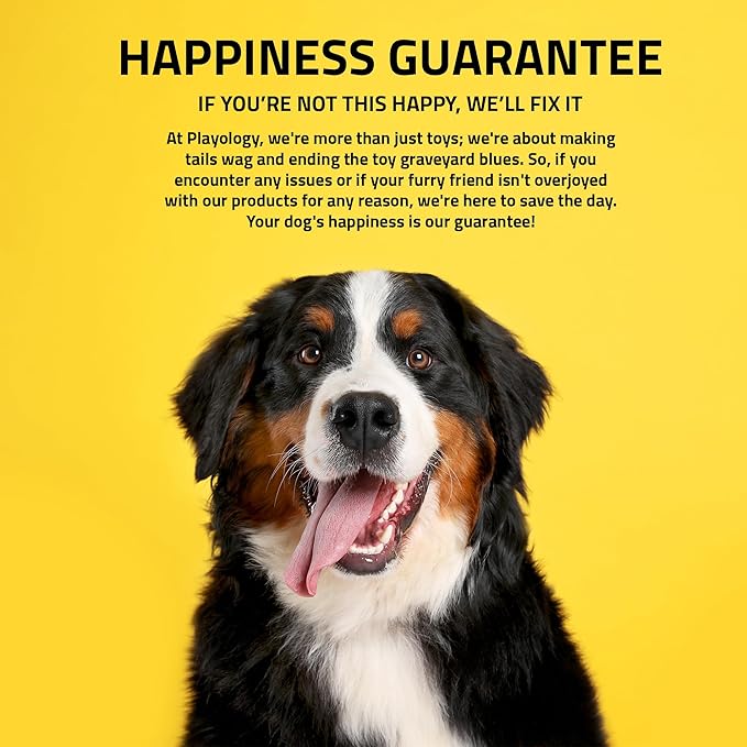 - Happiness Guaranteed: At Playology, we're more than just cool dog toys; we're about making tails wag and ending the toy graveyard blues. So, if you encounter any issues or if your furry friend isn't overjoyed with our pet toys for any reason, let us know and we'll make it right. Your dog's happiness is our guarantee!