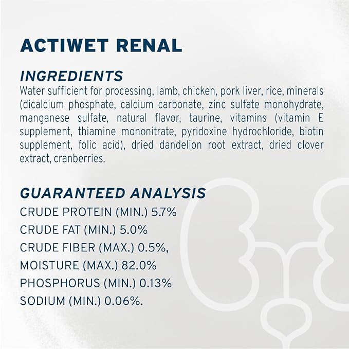 - SUPPORTS HEALTHY KIDNEYS: Specially formulated pet food helps maintain kidney function and supports overall renal and cardiac health. Made with high-quality protein and essential nutrients to promote well-being while providing a taste pets enjoy.