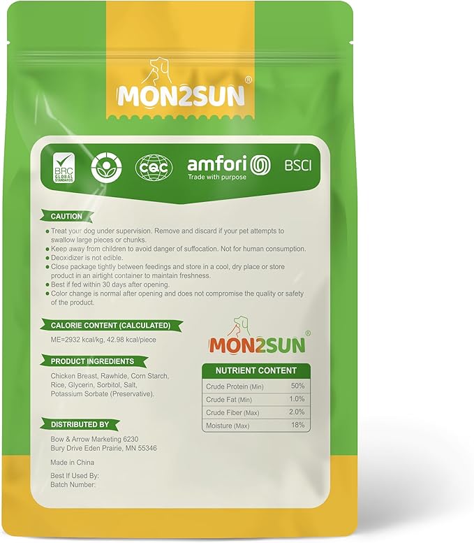 - [Convenience & Fresh] With resealable pouch that locks in freshness and prevents odors from escaping, MON2SUN dog chews are easy to store. Whether you're taking a walk or camping, our treats are the ideal snack for your puppy.