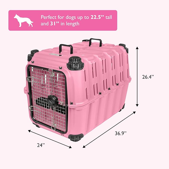 Mammoth Guardian Dog Kennel 36" Heavy Duty Travel & Outdoor Crate for Puppies, Small, Medium & Large Dogs, Secure 3 Bolt Lock, Adventure Ready for Hunting, Camping & Offroad – Pink Shock